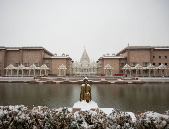 ठंड के मौसम में मंदिर पर पड़ी बर्फ बेहद खूबसूरत लग रही है। मंदिर का निर्माण हिंदू धार्मिक और सामाजिक संगठन बोचासनवासी अक्षर पुरूषोत्तम स्वामीनारायण संस्था (बीएपीएस) द्वारा किया गया था। BAPS के दुनिया भर में 1,000 से अधिक मंदिर हैं, जिनमें भारत के दो अन्य अक्षरधाम मंदिर भी शामिल हैं।