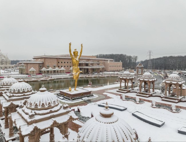बर्फबारी के बाद और भव्य हुआ अमेरिका का अक्षरधाम मंदिर, तस्वीरें देख आप भी कह उठेंगे वाह...