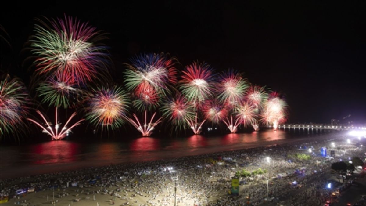 ब्राजील के रियो डी जनेरियो में नए साल के जश्न के दौरान आतिशबाजी से कोपाकबाना समुद्र तट जगमगा उठा।
