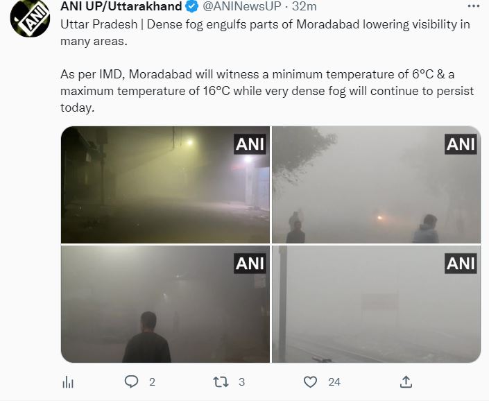 मुरादाबाद में कोहरा छाए रहने की वजह से विज़िबिलिटी कम