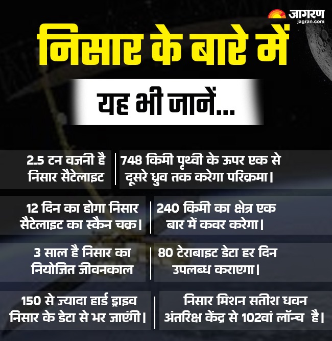 बता दें कि निसार सैटेलाइट का निर्माण और एकीकरण जनवरी 2024 में ही हो चुका था। इसका लॉन्च मार्च, 2024 में होना था, लेकिन हार्डवेयर अपग्रेड और अतिरिक्त परीक्षण के चलते इसका लॉन्च जुलाई, 2025 तक के लिए टाल दिया गया था।