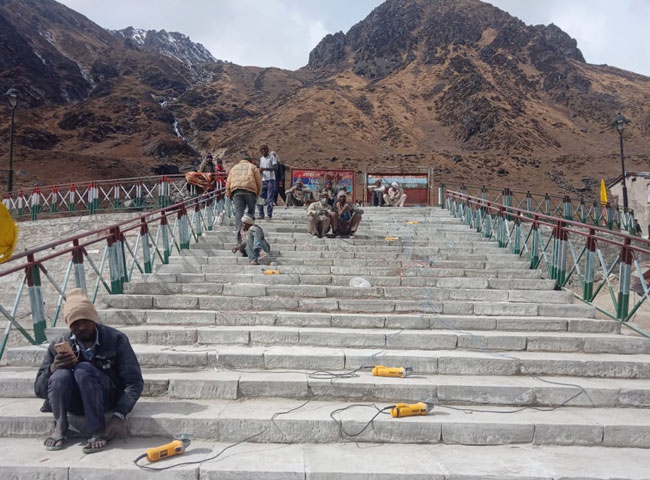 इसके लिए पहाड़ के अलावा राजस्थान व अन्य राज्यों से भी पत्थर तरासने वालेकारीगर केदारनाथ बुलाए गए। रात-दिन की कड़ी मेहनत के बाद उन्होंने कुल 1.10 लाख पहाड़ी पत्थर मंदिर परिसर, मंदिर के सामने पैदल मार्ग और दिव्य शिला के आसपास लगाए। वहीं, मंदिर के सामने बने चबूतरे पर 40 हजार और मंदिर के पीछे बनी दिव्य शिला पर दस हजार पत्थर लगाए गए हैं।