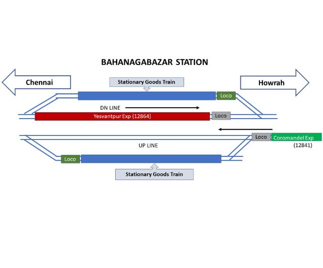 इसको लेकर रेलवे ने डायग्राम बनाकर तीनों गाड़ियों की स्थिति को समझाया है कि कैसे मालगाड़ी लूप लाइन में खड़ी थी और कोरोमंडल एक्सप्रेस डिरेल हुई।