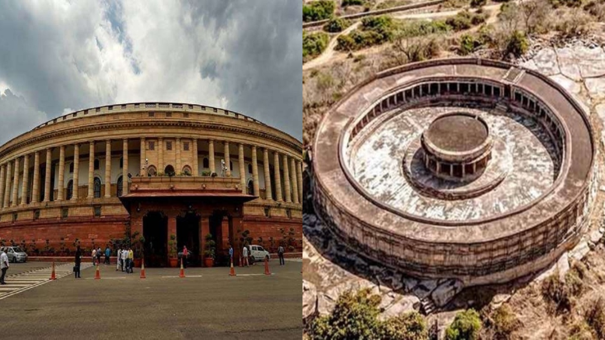 माना जाता है कि 1927 में बनकर तैयार हुए गोलाकार संसद भवन का डिजाइन मध्य प्रदेश के मुरैना जिले में स्थित चौसठ योगिनी के मंदिर से प्रभावित है, आप अगर पुराने संसद भवन और इस मंदिर को देखेंगे तो आपको काफी समानताएं नजर आएंगी, हालांकि इसका कोई प्रमाण मौजूद नहीं है।