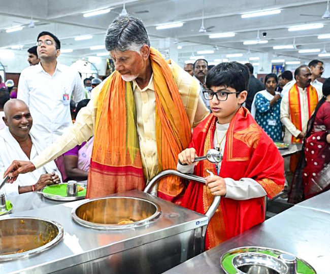 आंध्र प्रदेश के मुख्यमंत्री एन चंद्रबाबू नायडू ने शुक्रवार को अपने पोते देवांश के जन्मदिन के अवसर पर पूजा-अर्चना करने तिरुमाला भगवान श्री वेंकटेश्वर स्वामी मंदिर पहुंचे। सीएम नायडू के साथ उनका पूरा परिवार मौजूद था। सीएम चंद्रबाबू नायडू के पोते नारा देवांश का यह 10वां जन्मदिन है। परिवार पिछले 10 सालों से इस परंपरा का पालन कर रहा है।