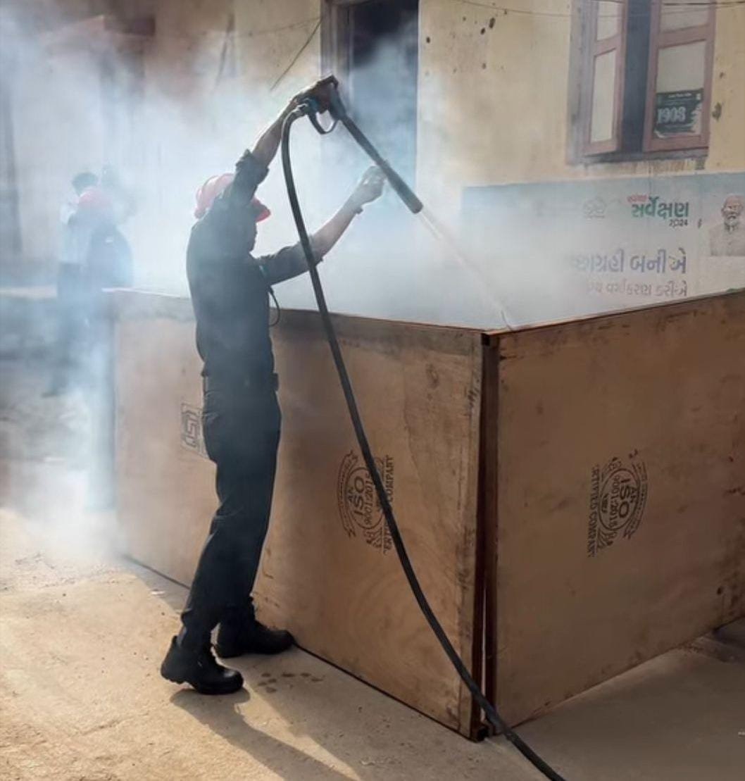 गुजरात के बॉर्डर जिले पाटन में मॉक ड्रिल के तहत बचावकर्मी हमले वाली जगह पर लगी आग को बुझाते देखे गए।