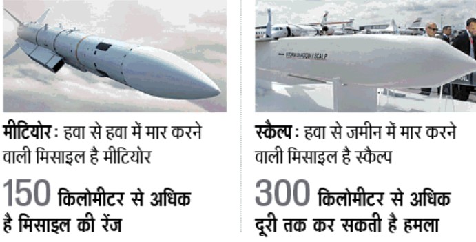 इसकी वजह यह है कि राफेल मीटियोर और स्कैल्प जैसी मिसाइलों से लैस है। मीटियोर हवा से हवा में मार करने वाली मिसाइल है और इसकी रेंज 150 किलोमीटर से अधिक है।इसका मतलब है कि राफेल भारत की ओर बढ़ रहे पाकिस्तानी लड़ाकू विमानों को 150 किलोमीटर दूर से ही तबाह कर सकता है।