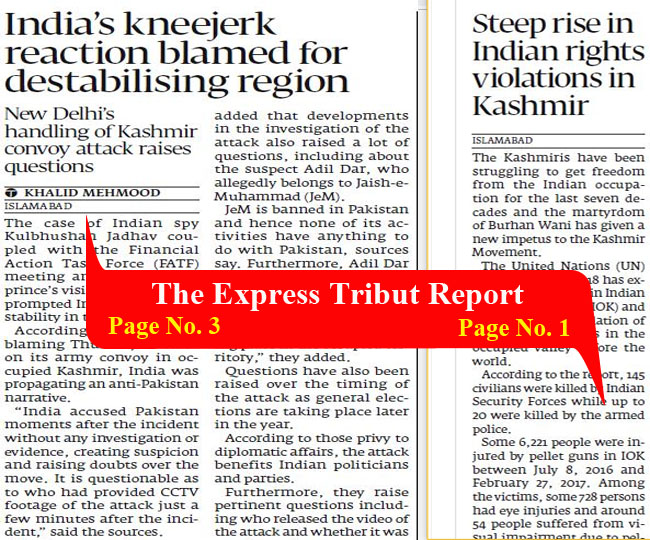 पाकिस्तान अखबार एक्सप्रेस ट्रिब्यून के ऑनलाइन संस्करण में पुलवामा हमले के पीछे भारत की राजनीतिक पार्टियों और नेताओं पर ही उंगली उठाई है।