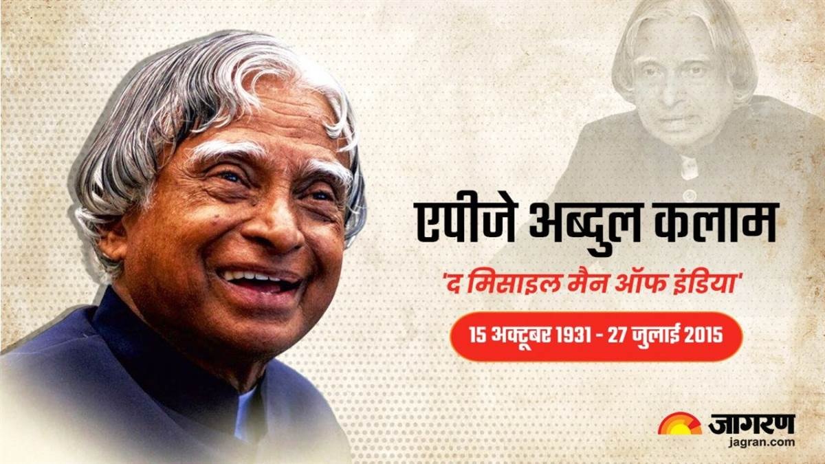 भारत रत्न अब्दुल कलाम का जन्म जन्म 15 अक्टूबर 1931 को तमिलनाडु के रामेश्वरम के पास धनुषकोडी गांव में हुआ था। उनका पूरा नाम अवुल पकिर जैनुलाब्दीन अब्दुल कलाम था। 2002 में उन्हें भारत के राष्ट्रपति के रूप में चुना गया था। 27 जुलाई 2015 को कलाम का निधन हुआ था।