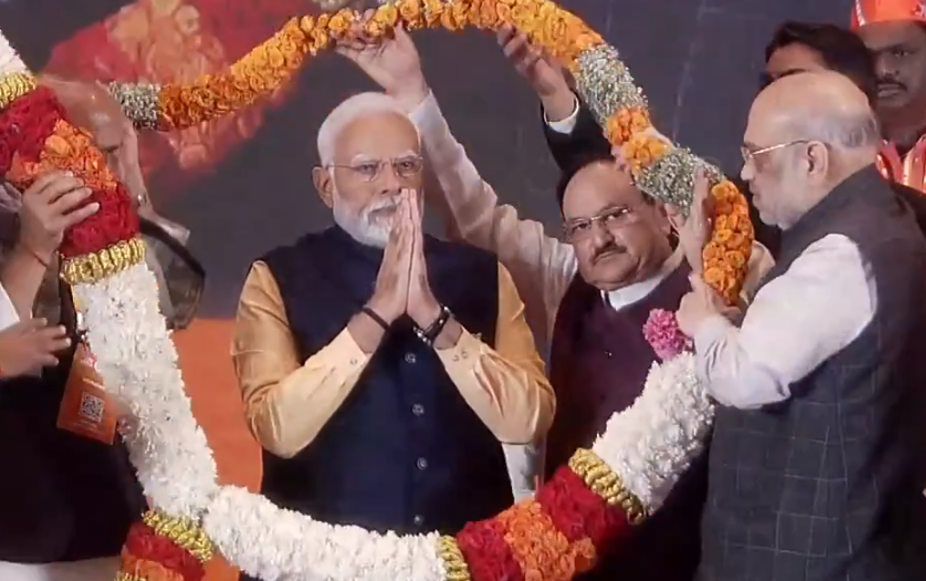 नीलू रंजन, नई दिल्ली। भाजपा के राष्ट्रीय अधिवेशन में जीत को लेकर पूरी तरह से आश्वस्त प्रधानमंत्री नरेन्द्र मोदी ने आगामी लोकसभा चुनाव को देश का भाग्य बदल देने वाला समय बताया है। फिर से वापसी का हुंकार भरते हुए उन्होंने चुनावी प्रचार का रोडमैप भी बताया और कार्यकर्ताओं को मोदी सरकार के 10 साल के काम और अगले पांच साल के प्लान के साथ हर लाभार्थी और मतदाता तक पहुंचने की अपील की।