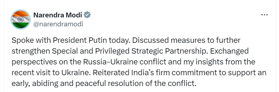 पीएम मोदी ने एक्स पर एक पोस्ट में कहा कि दोनों नेताओं ने दोनों देशों के बीच विशेष और विशेषाधिकार प्राप्त रणनीतिक साझेदारी को और मजबूत करने के उपायों पर भी चर्चा की।