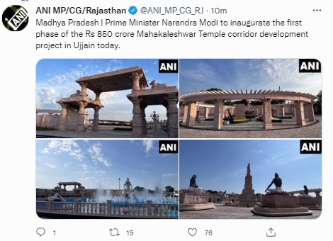 प्रधानमंत्री श्री @narendramodi जी आज उज्जैन में श्री महाकालेश्वर मंदिर कॉरिडोर का उद्घाटन करेंगे।#श्रीमहाकाललोक #ShriMahakalLok pic.twitter.com/UgxCtLjA22
