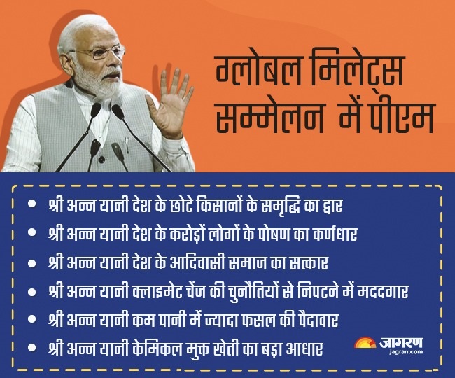 पीएम मोदी ने सम्मेलन को संबोधित करते हुए कहा कि मोटे अनाज को फ्री अन्न की पहचान दी गई है। यह केवल खेती खाने तक सीमित नहीं है। जो लोग भारत की परंपराओं से परिचित हैं, वे यह भी जानते हैं कि किसी के आगे 'श्री' ऐसे ही नहीं जुड़ता है, जहां 'श्री' होती है, वहां 'समृद्धि' भी होती है, 'समग्रता' भी होती है।