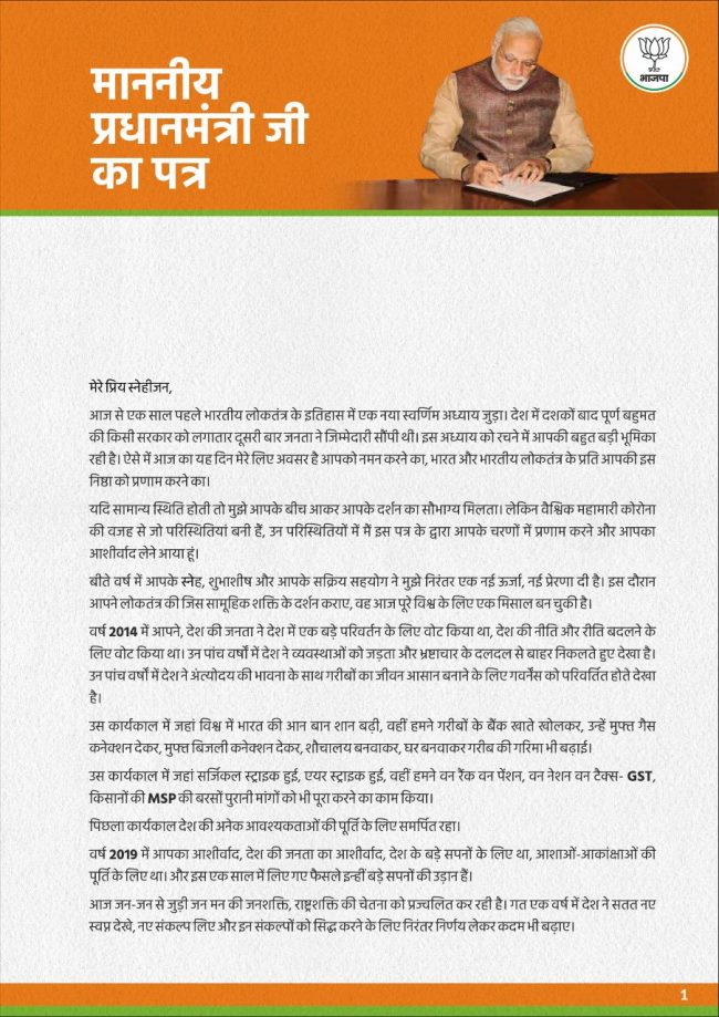 पीएम मोदी ने लिखा जनता को खुला पत्र, आप भी पढ़ें; कहा- भारत में दुनिया को चकित करने का सामर्थ्य