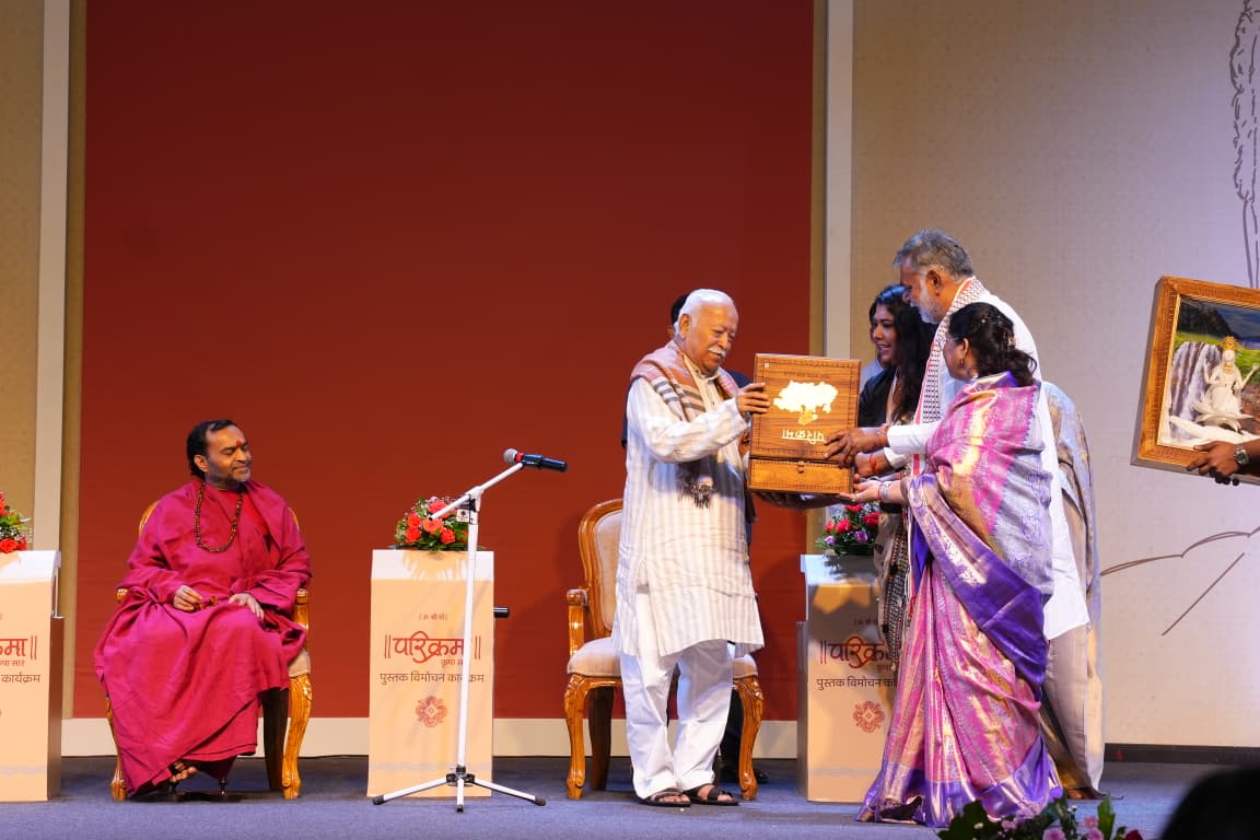 विमोचन कार्यक्रम के मुख्य अतिथि डॉ. भागवत ने कहा-‘नर्मदा परिक्रमा में जो कुछ प्रहलाद जी को बोध मिला होगा, उस बोध(पुस्तक) को सरसरी तौर पर जो मैंने पढ़ा है, उसमें तो यही है कि-मैं और मेरा छोड़ो; अंतःकरण पवित्र करो। स्वार्थ बिल्कुल मत रखो। कर्तव्य, कर्म करते चलो। सबको अपना मानकर चलते जाओ।’