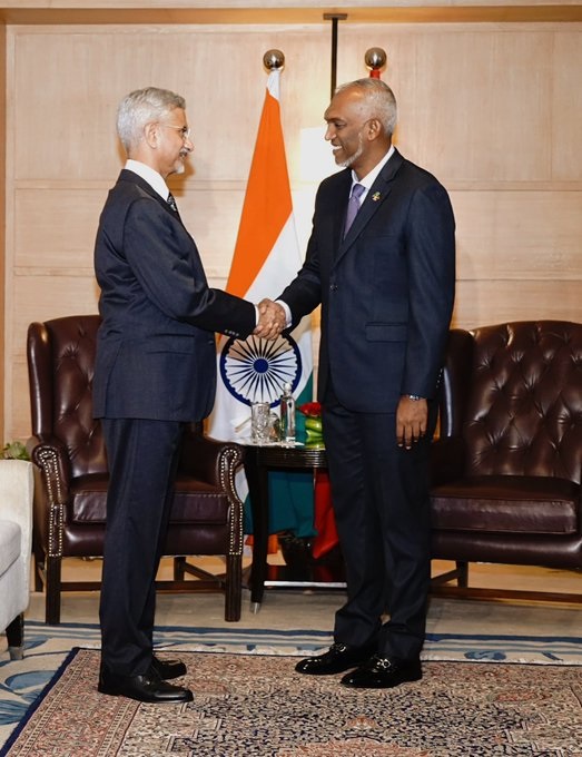 मुइज्जू के साथ एक्स पर अपनी फोटो को साझा करते हुए जयशंकर ने कहा कि भारत के सरकारी दौरे पर राष्ट्रपति मोहम्मद मुइज्जू का स्वागत करके वह बहुत प्रसन्न हैं।