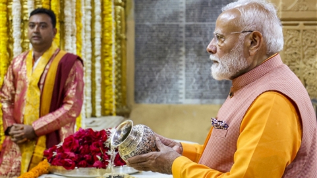 पीटीआई, जामनगर। प्रधानमंत्री नरेन्द्र मोदी ने रविवार को अपने गृह राज्य गुजरात की तीन दिवसीय यात्रा के दूसरे दिन रविवार को गिर सोमनाथ जिले में स्थित प्रतिष्ठित सोमनाथ मंदिर में पूरे विधि-विधान से भगवान शिव की पूजा-अर्चना की। उन्होंने सोमनाथ महादेव का जलाभिषेक भी किया।