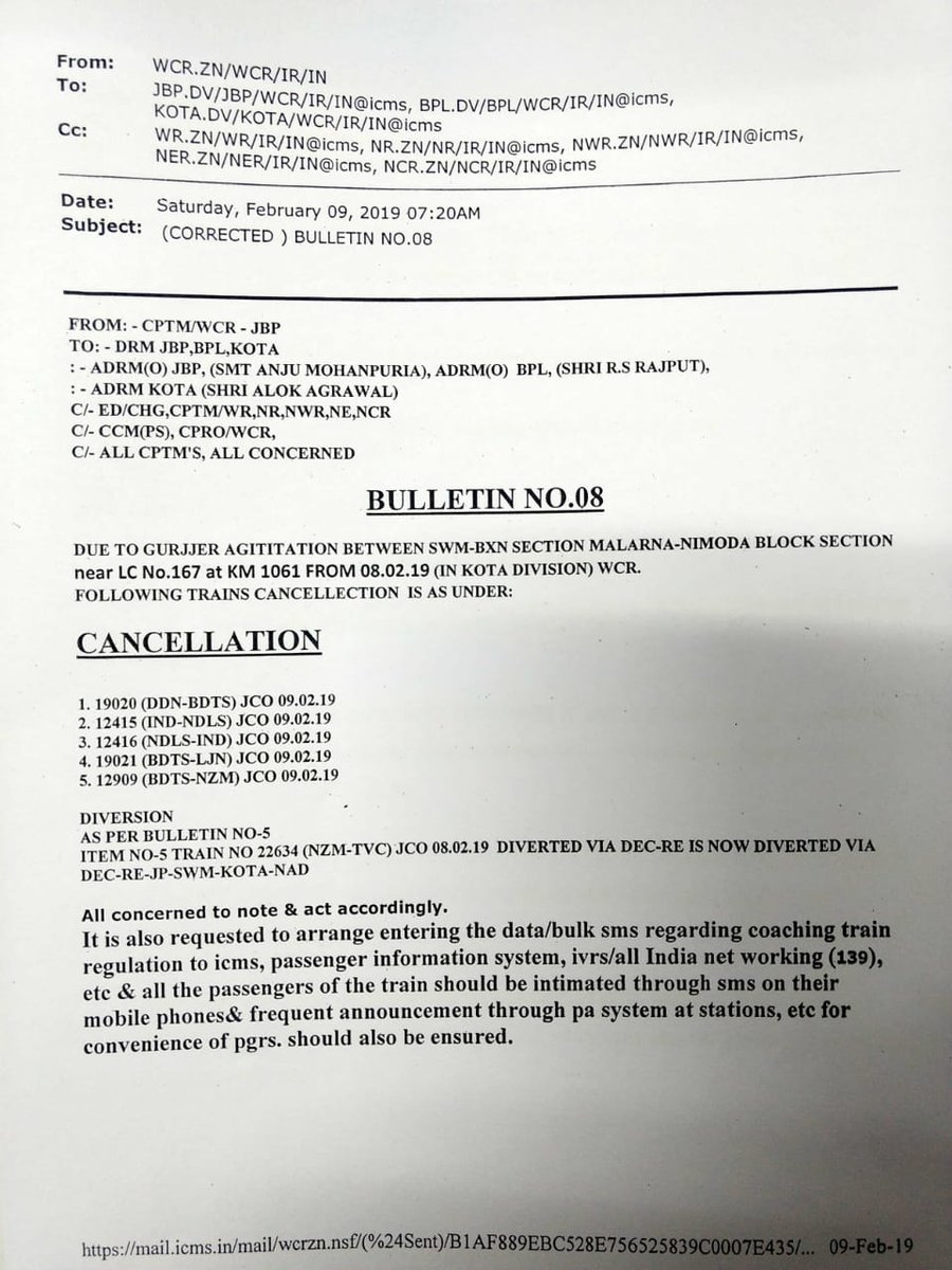 सरकार से कहा गया था कि यदि आरक्षण देने की घोषणा नहीं की गई तो गुर्जर समाज सवाई माधोपुर में दिल्ली-मुम्बई रेलवे ट्रैक पर कब्जा करने के साथ ही प्रदेश के विभिन्न स्थानों पर रेल और सड़क यातायात को बाधित करेगा।