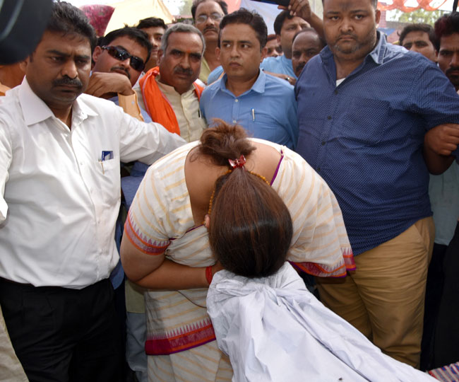 अपने सबसे प्यारे कार्यकर्ता से अंतिम बार मिलने के बाद जब स्मृति घर के अंदर पहुंचीं तो सुरेंद्र की मां की गोद में अपना सिर रख दिया और कहा आज से मैं ही आपका बेटा हूं मां। बड़े भाई नरेंद्र के चरणों में शीश झुकाकर बहन होने का अहसास कराया तो दिवंगत कार्यकर्ता की पत्नी को बांहों में भर अपनत्व का मरहम लगाने की कोशिश की। शादीशुदा बेटी पूजा व प्रतिमा के सिर पर अपना हाथ फेरा और कहा हर पल साथ रहेगी तेरे पापा की दीदी।