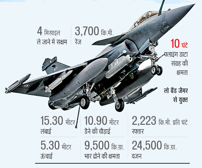 राफेल में तीन तरह की घातक मिसाइल व छह लेजर गाइडेड बम फिट हो सकते हैं। दासौ निर्मित राफेल फ्रांस की वायुसेना व नौसेना में पिछले 14 वर्ष से तैनात हैं और अफगानिस्तान, इराक, सीरिया व लीबिया में अपनी क्षमता दिखा चुके हैं। चीनी जे-20 सिर्फ तीन वर्ष पहले सेना में शामिल किए गए हैं। हर प्रकार के मौसम में परिचालन में सक्षम राफेल की स्कैल्प मिसाइलें 500 किलोमीटर दूर से ही किसी भी बंकर को नष्ट कर सकती हैं।