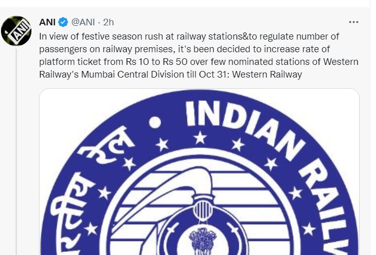 Railway Platform Ticket: त्योहारी सीजन में अब 50 रुपये का हुआ प्लेटफॉर्म टिकट, रेलवे ने जारी किया बयान