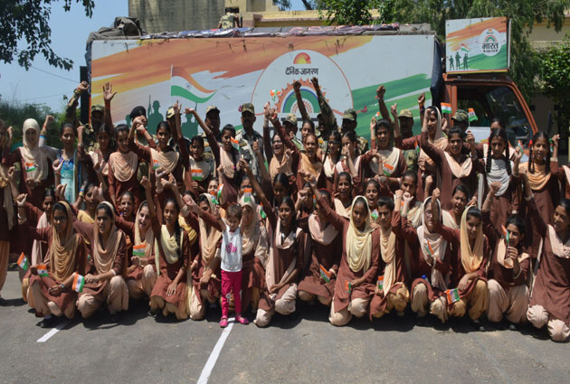 दैनिक जागरण व नई दुनिया की ओर से वीर जवानों के लिए चले यह रथ करीब बारह बजे जब अंतरराष्ट्रीय सीमा पर पहुंचे तो उनका स्वागत करने के लिए सीमा सुरक्षा बल के अधिकारी, जवान, यूनाइटेड पब्लिक हायर सेकेंडरी स्कूल छन्नी हिम्मत, डोगरा पब्लिक स्कूल, ग्लोबल ग्रीन पीस, एंवायरनमेंट प्रोटेक्शन ऑर्गेनाइजेशन के सदस्य मौजूद थे। उन्होंने हाथों में तिरंगे लिए और भारत माता की जयकार कर रहे थे।