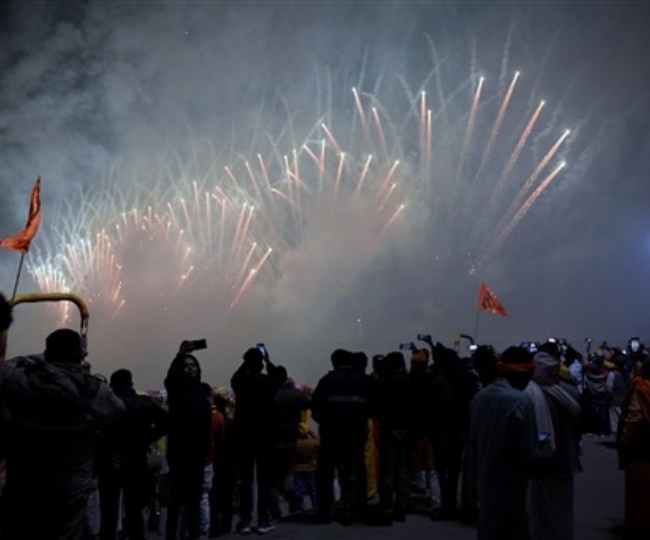 अयोध्या में राम मंदिर के प्राण प्रतिष्ठा समारोह के अवसर पर लोगों ने सरयू घाट पर आतिशबाजी की। इसके साथ ही राम भक्तों ने घाटों पर दीए जलाए।