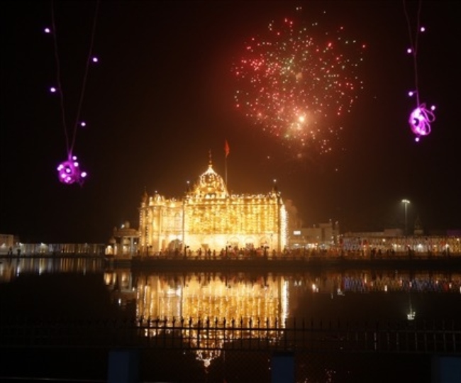 पंजाब के अमृतसर में भी राम मंदिर के प्राण प्रतिष्ठा समारोह के अवसर पर रोशनी से सराबोर रहा। यहां दुर्गियाना मंदिर पर आतिशबाजी की गई।