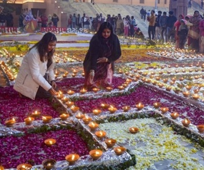 कृष्ण नगरी मथुरा में राम मंदिर के प्राण प्रतिष्ठा समारोह के बाद दीए जलाए गए।