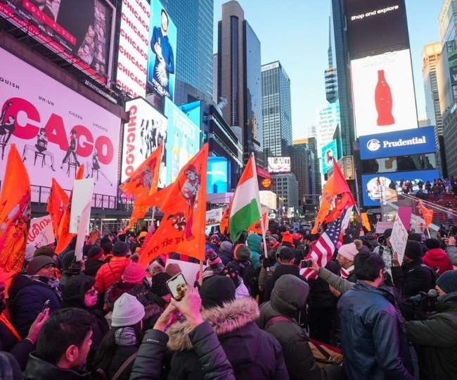 22 जनवरी के जश्न और उत्साह ने भारत की सीमा पार कर ली है। दरअसल, अमेरिका में प्राण प्रतिष्ठा के उपलक्ष्य में कई कार्यक्रमों का आयोजन किया गया है। टाइम्स स्क्वायर में लोगों ने एक-दूसरे को मिठाई खिलाकर खुशी और उत्साह जताया है।