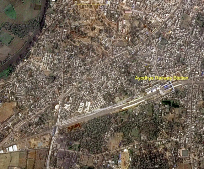 हैदराबाद में राष्ट्रीय रिमोट सेंसिंग सेंटर के जरिए ये तस्वीरें जुटाई गई हैं। राम मंदिर स्पष्ट रूप से दिखाई देने के लिए रिमोट सेंसिंग कृत्रिम सैटेलाइट से ली गई फोटो को तकनीक की मदद से बड़ा किया गया है। सैटेलाइट तस्वीरों में राम मंदिर के पास पुनर्विकसित दशरथ महल और सरयू नदी भी देखी जा सकती है। एनआरएससी द्वारा साझा की गई तस्वीरों में नव पुनर्निर्मित अयोध्या रेलवे स्टेशन भी नजर आ रहा है।