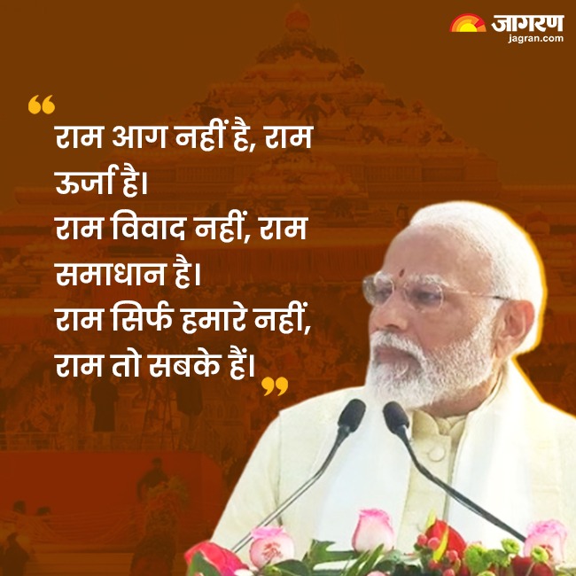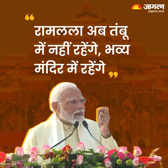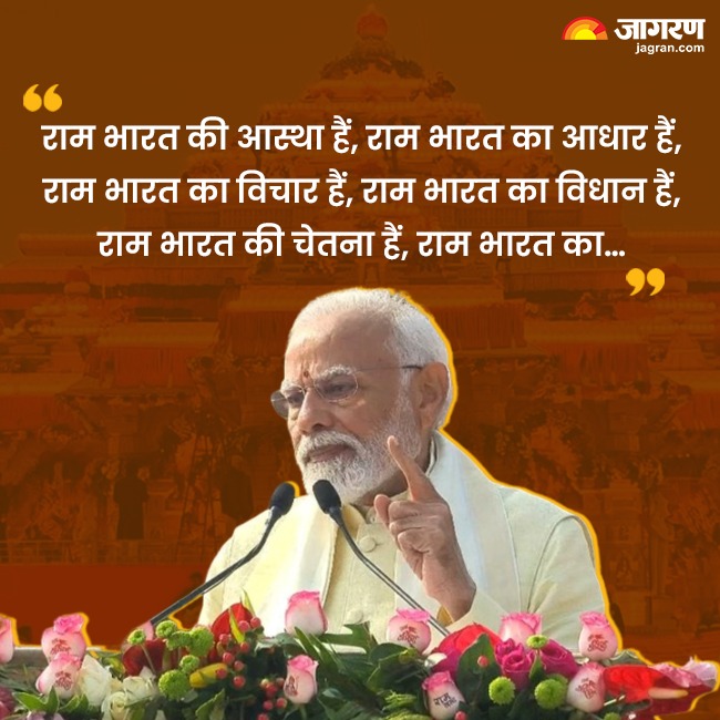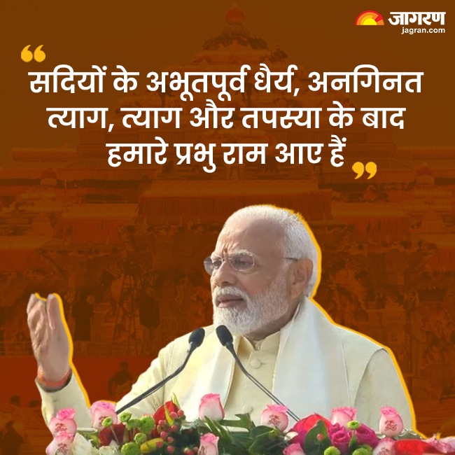 पीएम मोदी ने कहा कि ये भव्य राम मंदिर साक्षी बनेगा- भारत के उत्कर्ष का, भारत के उदय का। ये भव्य राम मंदिर साक्षी बनेगा- भव्य भारत के अभ्युदय का, विकसित भारत का। संविधान के अस्तित्व में आने के बाद भी दशकों तक प्रभु श्रीराम के अस्तित्व को लेकर कानूनी लड़ाई चली। मैं आभार व्यक्त करूंगा भारत की न्यायपालिका का जिसने न्याय की लाज रख ली। न्याय के पर्याय प्रभु श्रीराम का मंदिर भी न्याय बद्ध तरीके से बना।