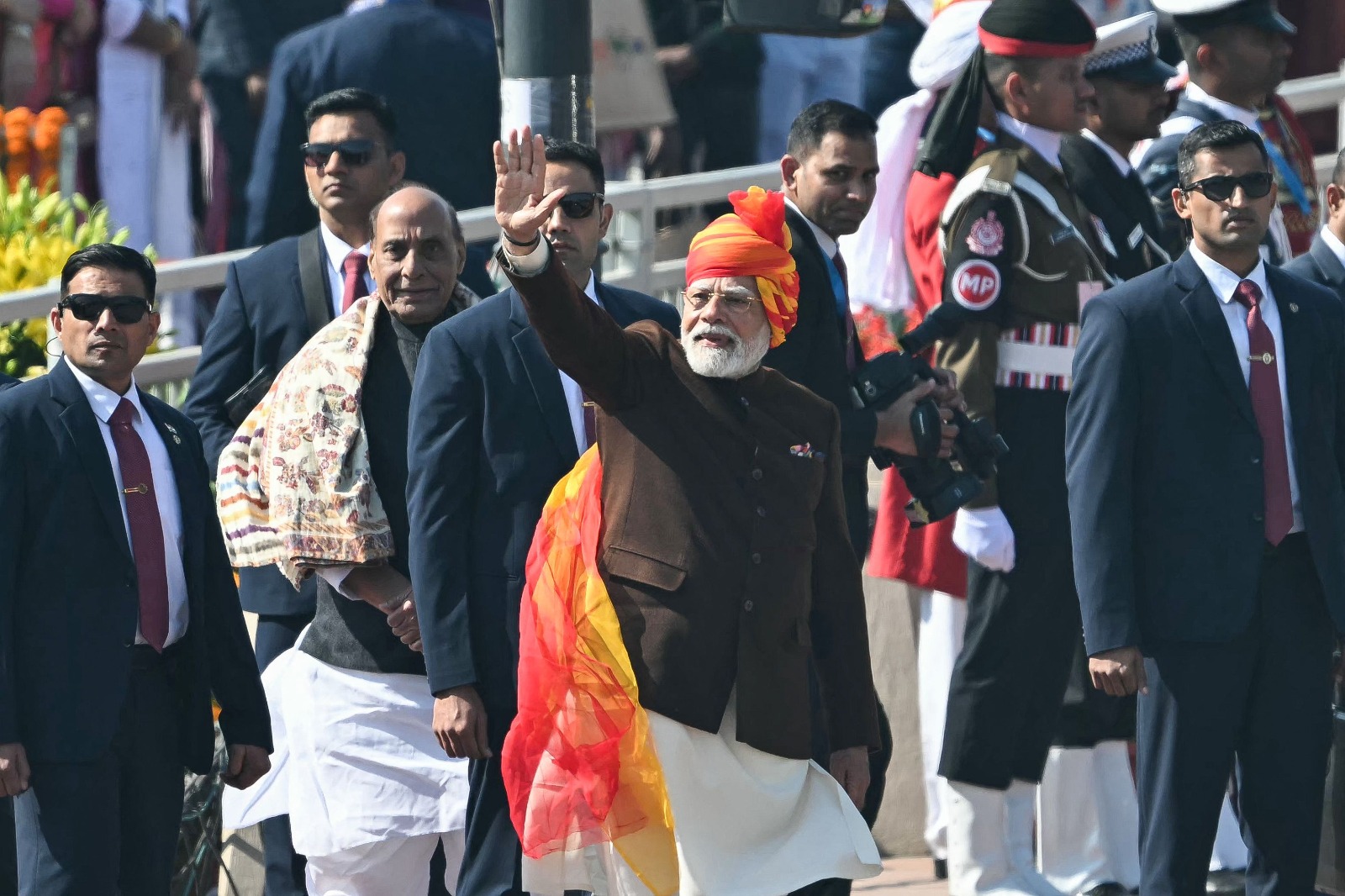 76वें गणतंत्र दिवस परेड में सैन्य ताकत विविधता में एकता की अनमोल सांस्कृतिक धरोहर और आर्थिक-वैज्ञानिक प्रगति की झलकियों ने देश के लोगों का मन मोह लिया। राफेल सुखोई जगुआर मिग जैसे लड़ाकू विमानों के कौशल से कर्तव्य पथ रोमांचित हो गया। तीनों सेनाओं की सर्वोच्च कमांडर राष्ट्रपति द्रौपदी मुर्मु ने परेड की सलामी ली। रक्षामंत्री राजनाथ सिंह ने परेड स्थल पर पहुंचे पीएम मोदी की अगवानी की।