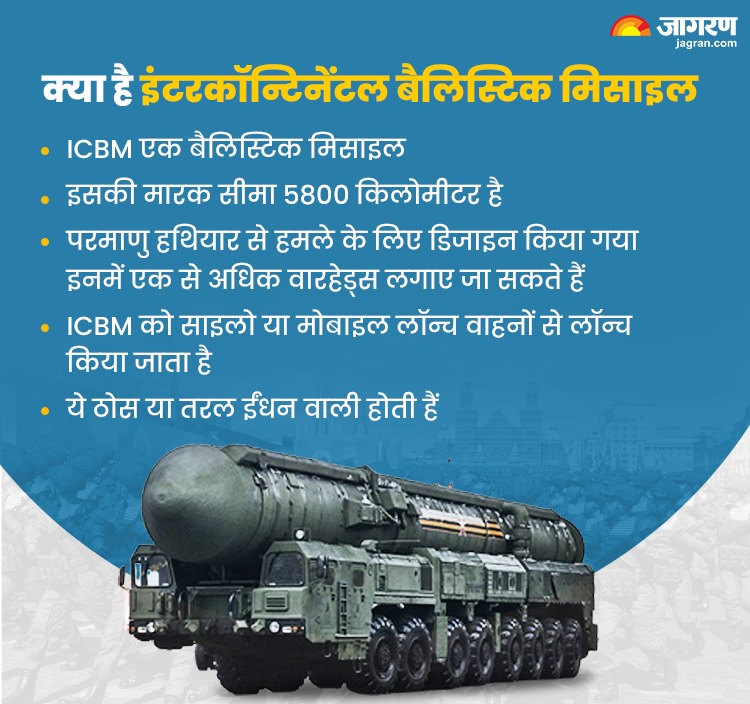 What Is ICBM Missile: रॉयटर्स, कीव। रूस ने गुरुवार को यूक्रेन के Dnipro शहर पर इंटरकॉन्टिनेंटल बैलिस्टिक मिसाइलों (ICBM) से ताबड़तोड़ हमले किए। इस युद्ध (Russia Ukraine War) में रूस ने पहली बार (ICBM) मिसाइल से हमला किया है। ICBM मिसाइल को बेहद खतरनाक माना जाता है। ICBM मिसाइल क्या होती है, ICBM मिसाइल की रेंज (ICBM Missile Range) और उसकी मारक क्षमता (ICBM Missile Speed) समेत पूरी डिटेल जानिए।