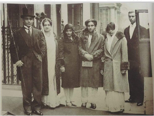 भोपाल रियासत के आखिरी नवाब हमीदुल्लाह खान, अपनी बेगम मैमूना सुल्तान और तीनों बेटियों- राबिया, आबिदा और साजिदा के साथ। (बाएं से दाएं)