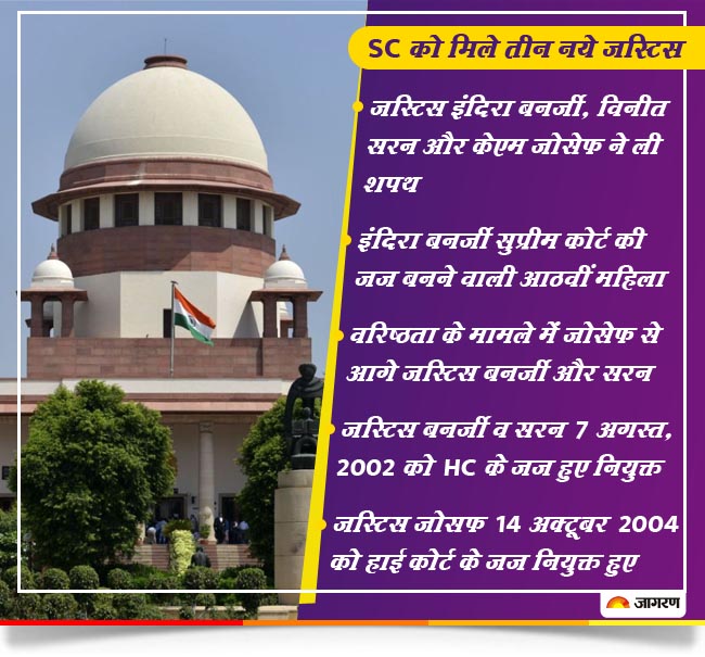 वरिष्ठता के आधार पर जस्टिस इंदिरा बनर्जी, विनीत सरन और केएम जोसेफ ने शपथ ली। ...और पढ़ें