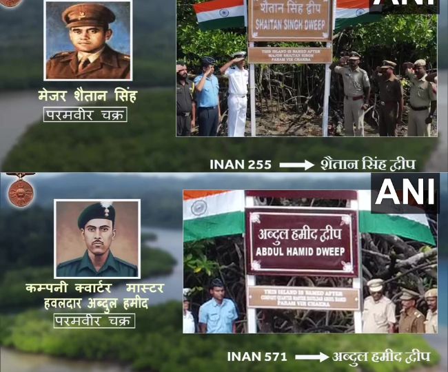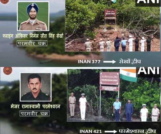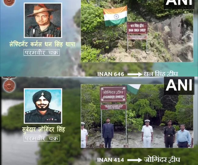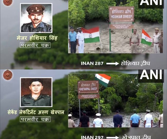 पीएम मोदी द्वारा आज रखे गए 21 द्वीपों के नामों में मेजर होशियार सिंह, सेकेंड लेफ्टिनेंट कर्नल अरुण खेत्रपाल भी शामिल हैं। फ्लाइंग ऑफिसर निर्मलजीत सिंह सेखों, मेजर रामास्वामी परमेश्वरन के नाम पर भी द्वीप का नामकरण किया गया है।