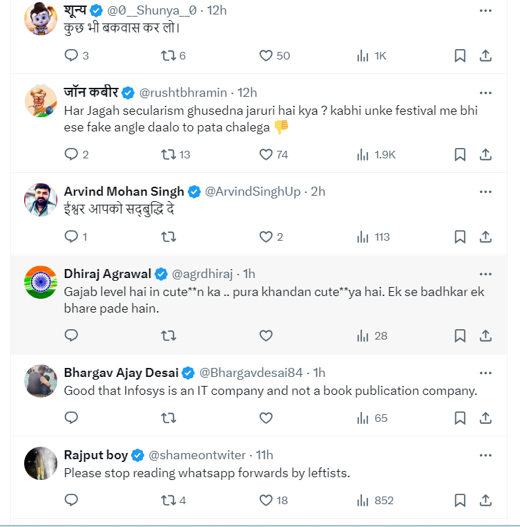राज्यसभा सांसद सुधा मूर्ति द्व्रारा रक्षाबंधन पर एक वीडियो पोस्ट शेयर करने के बाद खूब ट्रोल हुई। उन्होंने रक्षा बंधन की उत्पत्ति को मुगल सम्राट हुमायूं और चित्तौड़ की रानी कर्णावती से जुड़ी एक किंवदंती से जोड़ा था। इस पोस्ट के बाद इंटरनेट यूजर्स ने सुधा मूर्ति को काफी ट्रोल किया और भारत का इतिहास पढ़ने की भी सलाह दे दी।
