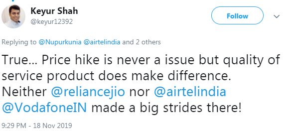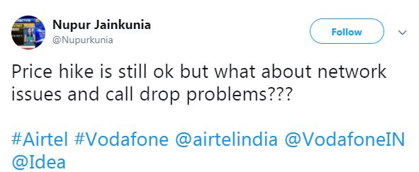 बढ़ाए गए दामों का कई यूजर ने समर्थन भी किया। एक यूजर नूपुर ने लिखा कि कितमों का बढ़ना फिर भी ठीक है, लेकिन, नेटवर्क और कॉल ड्रॉप की समस्या का क्या?