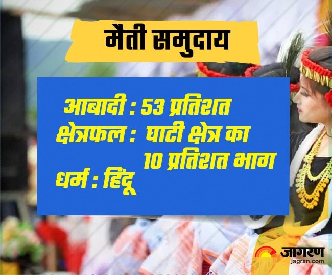 मैती समुदाय की जनसंख्या करीब 53 प्रतिशत है, लेकिन वह करीब 10 प्रतिशत क्षेत्र में ही रह सकता है। कुकी और नगा समुदाय के इंफाल घाटी में रहने पर कोई कानूनी बंदिश नहीं है।