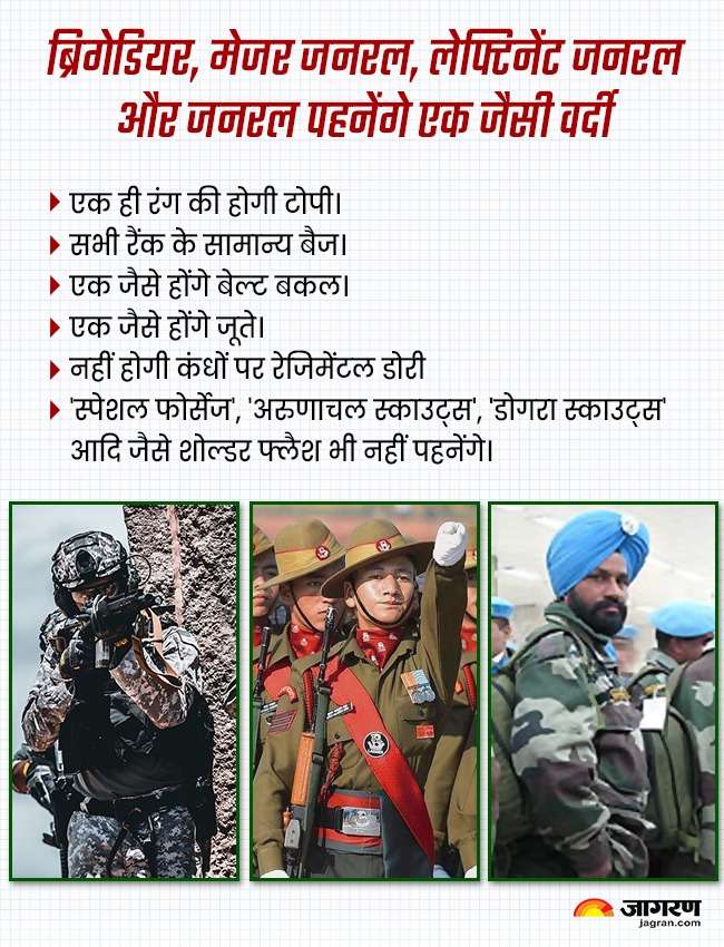 Indian Army Uniform: ब्रिगेडियर और बड़ी रैंक के अफसरों की वर्दी होगी एक समान, ऐसे समझें यूनिफॉर्म के बदलाव