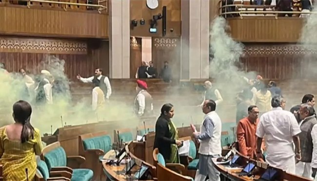 संसद की सुरक्षा में बुधवार को बड़ी चूक हुई। दो लोग दर्शक दीर्घा से लोकसभा कक्ष में कूद गए। वे अपने साथ पीला धुंआ निकालने वाला कलर गैस क्रैकर लेकर आए थे। सदन में पीला धुंआ फैलने से दहशत फैल गई। इस बीच संसद परिसर में दो लोगों ने नारेबाजी की और पीला धुंआ फैलाया।