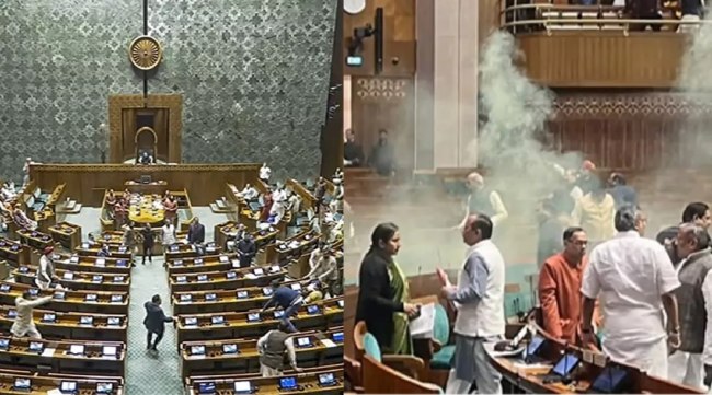 13 दिसंबर 2001 को संसद पर दुस्साहसिक आतंकी हमले की बरसी वाले दिन ही लोकसभा और संसद परिसर के बाहर बड़ी सुरक्षा चूक का मामला सामने आया। पहले दोपहर लगभग एक बजे लोकसभा में दर्शक दीर्घा से दो युवक सागर शर्मा व मनोरंजन डी.सदन के भीतर कूदे और उन्होंने जूतों में छिपाकर ले जाए गए एक कलर स्मोक क्रैकर के जरिये हल्के पीले रंग का धुआं उड़ाकर पूरे देश को स्तब्ध कर दिया।