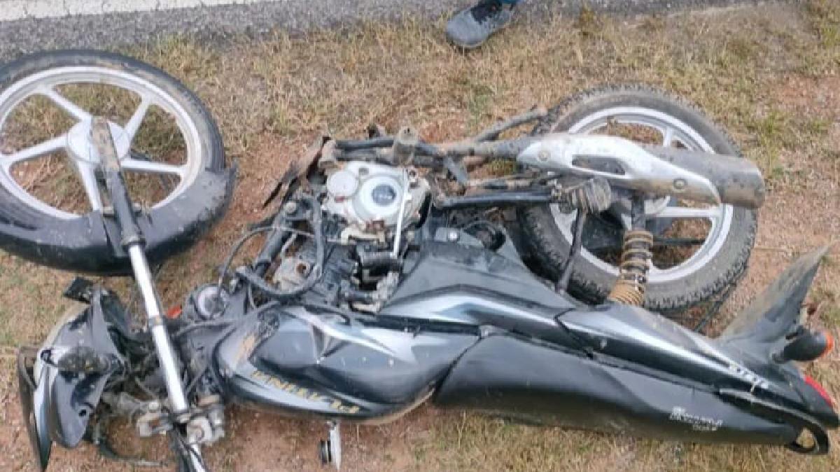 हादसे में दुर्घटनाग्रस्त हुई बाइक। फोटो- जेएनएन