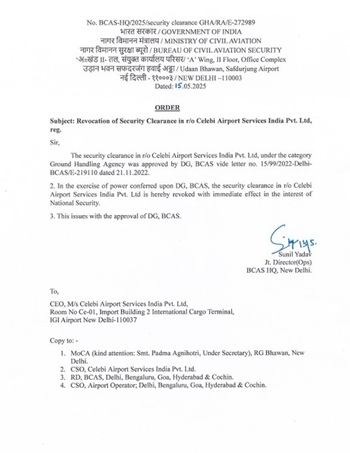 Turkey Boycott Row भारतीय नागरिक उड्डयन सुरक्षा ब्यूरो ने सेलेबी एयरपोर्ट सर्विसेज इंडिया प्राइवेट लिमिटेड की सुरक्षा मंजूरी (security clearance) तत्काल प्रभाव से रद कर दी है। सरकार ने जानकारी दी कि राष्ट्रीय सुरक्षा के हित में यह फैसला लिया गया है। सेलेबी एक तुर्किए की कंपनी है जो भारत में ग्राउंड हैंडलिंग सेवाएं देती है।