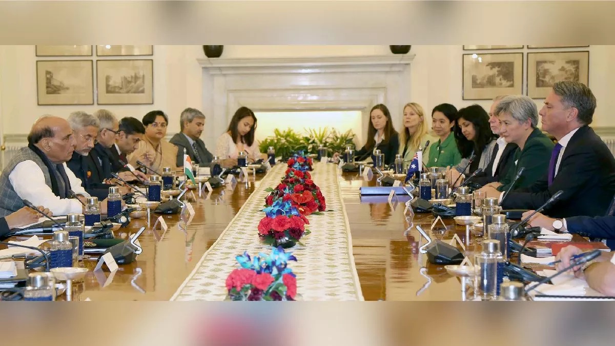 सोमवार को दूसरी भारत-ऑस्ट्रेलिया टू प्लस टू मंत्री स्तरीय वार्ता के तहत रक्षा मंत्री राजनाथ सिंह और विदेश मंत्री एस. जयशंकर ने ऑस्ट्रेलिया के उप-प्रधानमंत्री व रक्षा मंत्री रिचर्ड मार्ल्स और विदेश मंत्री पेनी वोंग से बातचीत की।