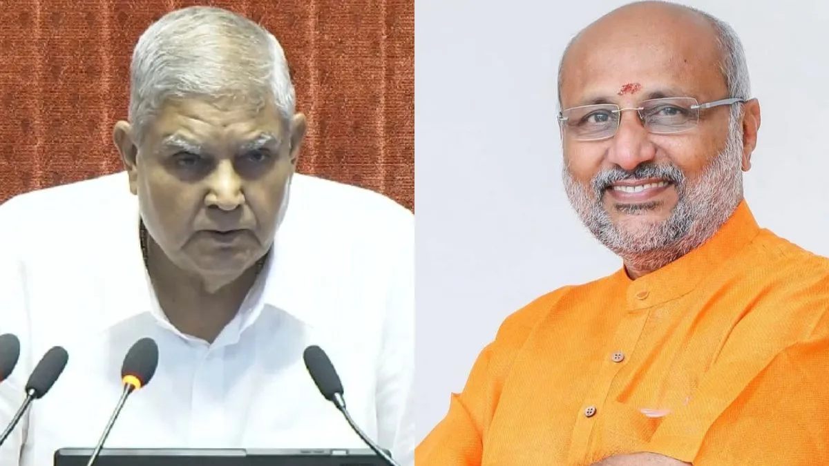 पूर्व उपराष्ट्रपति जगदीप धनखड़ और उपराष्ट्रपति उम्मीदवार सीपी राधाकृष्णन। फाइल फोटो