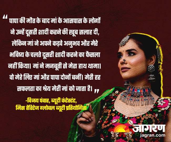 विजया पंवार के मुताबिक, इसके बाद मिस ग्लैमरस इंडिया प्रतियोगिता का आयोजन हुआ तो मैंने भी उसमें पार्टिसिपेट किया। अलग-अलग राज्यों से कुछ 96 लड़कियां आई थीं। एक से एक, अनुभवी और उनके बीच मैं, मुझे लगा नहीं था कि मैं जीत पाऊंगी, लेकिन जब क्वेश्चन-आंसर राउंड हुआ तो मेरे जवाब ज्यूरी को अच्छे लगे।