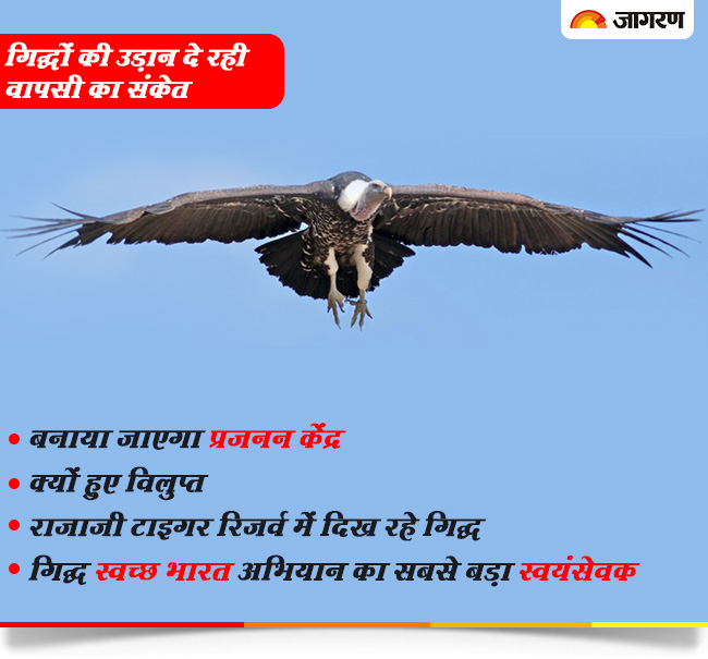 राजाजी टाइगर रिजर्व में भी दिख रहे गिद्ध: हिमालय की तलहटी में स्थित राजाजी टाइगर रिजर्व में में पिछले दिनों अखिल भारतीय बाघ गणना के दौरान सफेद रंग के दो दर्जन गिद्ध देखे गए। अधिकारियों के मुताबिक इनकी संख्या यहां बढ़ रही है।