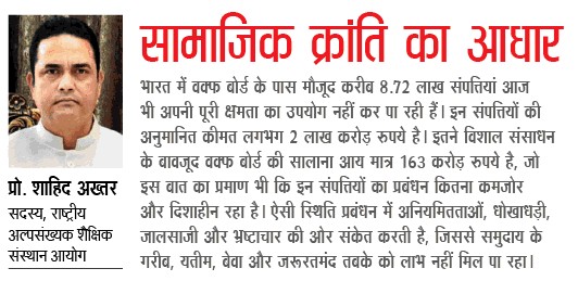 वक्फ कानून की खामियों को दूर करने के बाद सरकार के सामने यह बड़ी चुनौती होगी कि नए प्रावधान को प्रभावी तरीके से लागू किया जाए, जिससे वक्फ संपत्तियों से उसकी वर्तमान कीमतों के हिसाब से आय सुनिश्चित हो सके और राशि गरीब मुसलमानों,विधवा महिलाओं और अनाथ बच्चों के कल्याण पर खर्च हो।